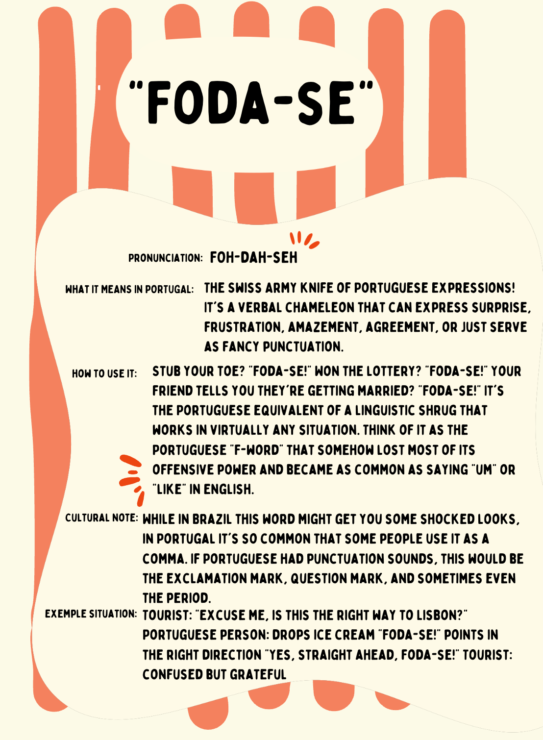 A Expressão: A rainha das expressões portuguesas, versátil e cheia de atitude! Pode ser raiva, surpresa, frustração ou até admiração. É o "wow", o "damn it" e o "holy cow" tudo num só!
